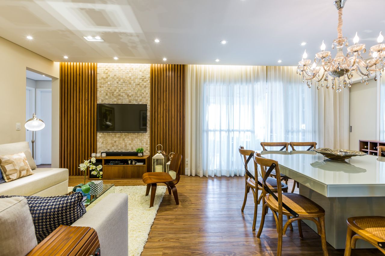 - Tamanho da sala: de acordo com Fernanda, uma sala com tamanho reduzido não deve utilizar lustres grandes, pois dará a sensação de que o ambiente é menor do que o real. “Procure pendentes delicados e pequenos para causar uma sensação de amplitude no ambiente”, orienta.